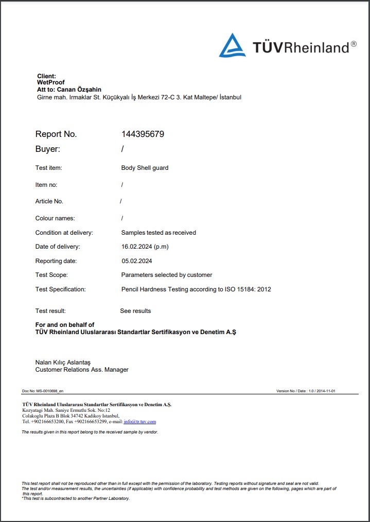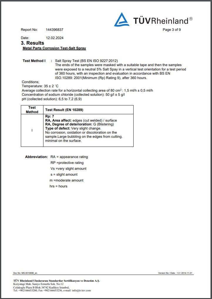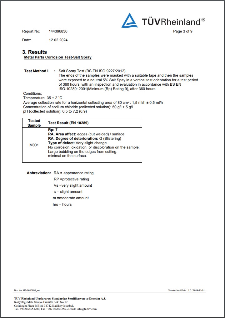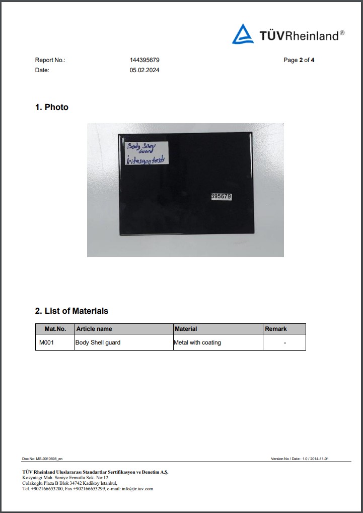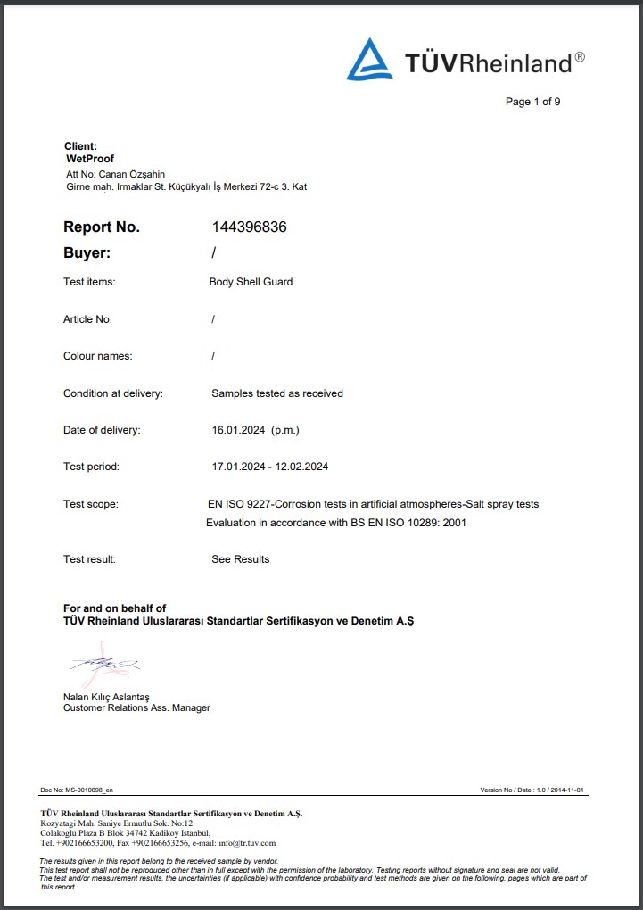 TUV Rheinland Body Shell Guard Salt Spray Test Report